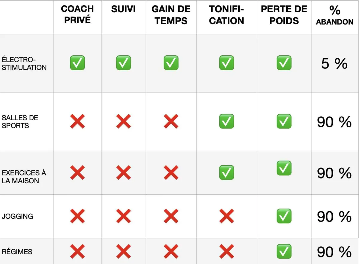 C’est prouvé scientifiquement par plusieurs études que 20min d’electrostimulation = 4h de sport grâce une amplification de la contraction musculaire due à la machine. De nombreux athlètes hauts niveaux (Athlètes olympiques, clubs de foot) s’en servent depuis des années.